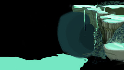 After experimenting with the ice cave idea yesterday, I decided to try and incorporate different environments together to see what sort of space I could come up with.